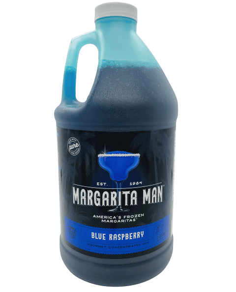Blue Raspberry mix concentrate. This popular kid flavor has a bubblegum taste. Serve without alcohol for the kids, or add rum or vodka for the adults coming back for refills. One half-gallon of concentrate produces 3.5 gallons of frozen Blue Raspberry Daiquiris and yields 56 drinks (8-ounces each) with alcohol mixed in, or 48 non-alcoholic slushies.